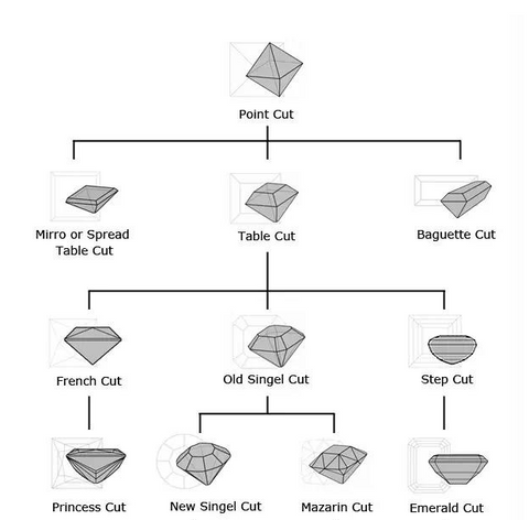 The first cut diamond appeared in Europe in 1380. It was based on the original octahedron. The cutter used a board coated with diamond shavings and olive oil to remove the protrusions and growth marks on the edge of the diamond. Since the octahedral surface is a cleavage surface, it is very difficult to polish completely along the cleavage surface, so the polished facet has a small angle of intersection with the octahedral surface.